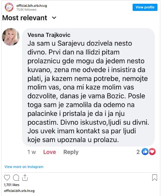Nakon povratka u Beograd, Vesna je pričala svima o svom doživljaju u Sarajevu. Ponekad je teško prenijeti emocije koje doživimo, ali ona je to uspješno učinila. Objasnila je da nije bilo samo pitanje ljubaznosti, već dublje povezanosti koja je odražavala suštinu Sarajeva. Svaki put kad bi neko spomenuo Bosnu, Vesna bi se nasmiješila, a u njenom srcu bi se ponovo javila ona ista toplina koju je osjetila tog dana. Njene priče su inspirisale mnoge, pokrećući pitanje kako je važno otvoriti se prema drugima i pružiti ruku prijateljstva, bez obzira na razlike.